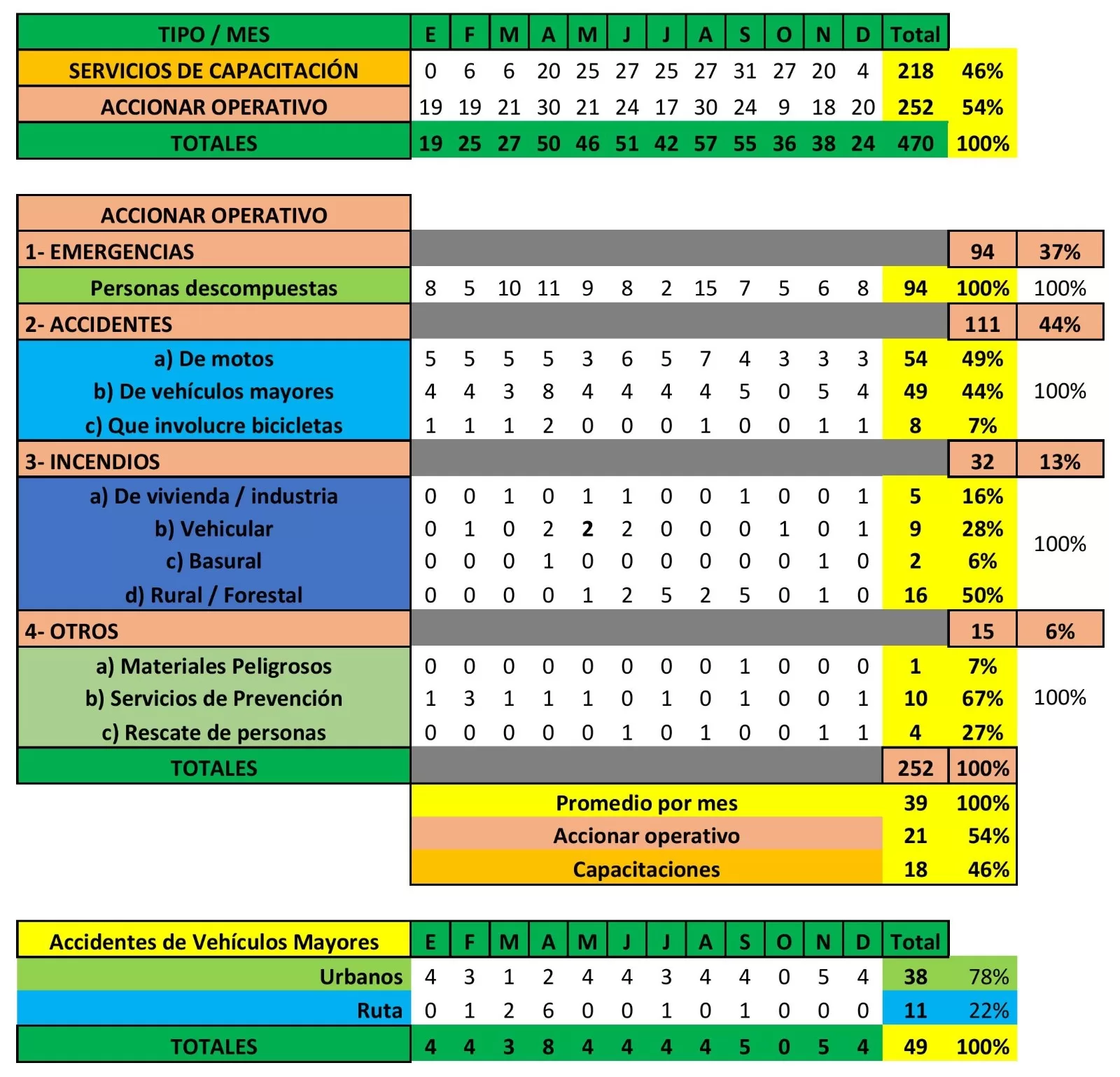 – el accionar bomberil, a cubrir rescates y emergencias, alcanzó un 54%.