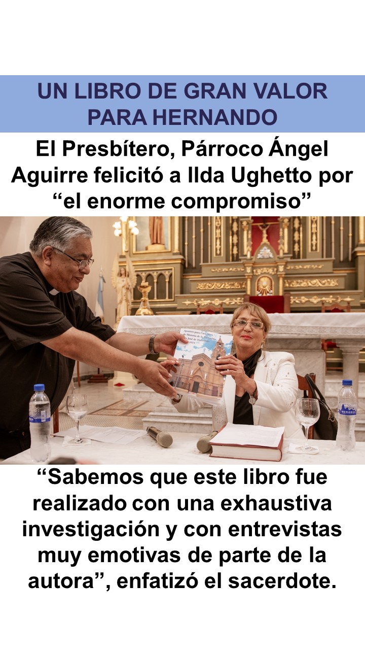 La Escritora Ilda Ughetto presentó su libro «Apuntes para cien años de historia de la Parroquia San José de Hernando»FacebookTwitterWhatsAppLinkedinTelegram
